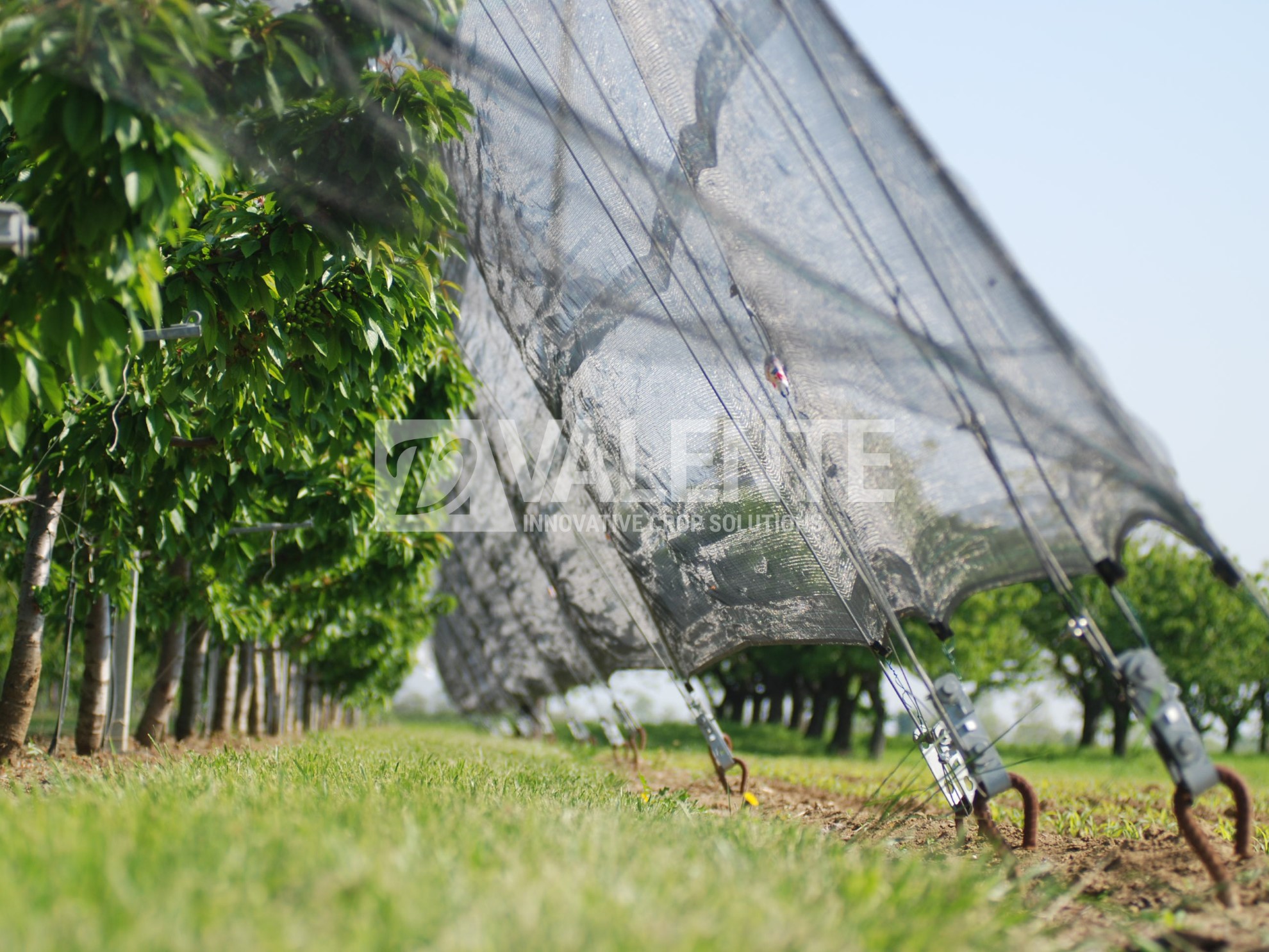 Valente offers a quick and automatic system that allows rain covers to be opened and closed like an umbrella, for optimal cherry orchard management.