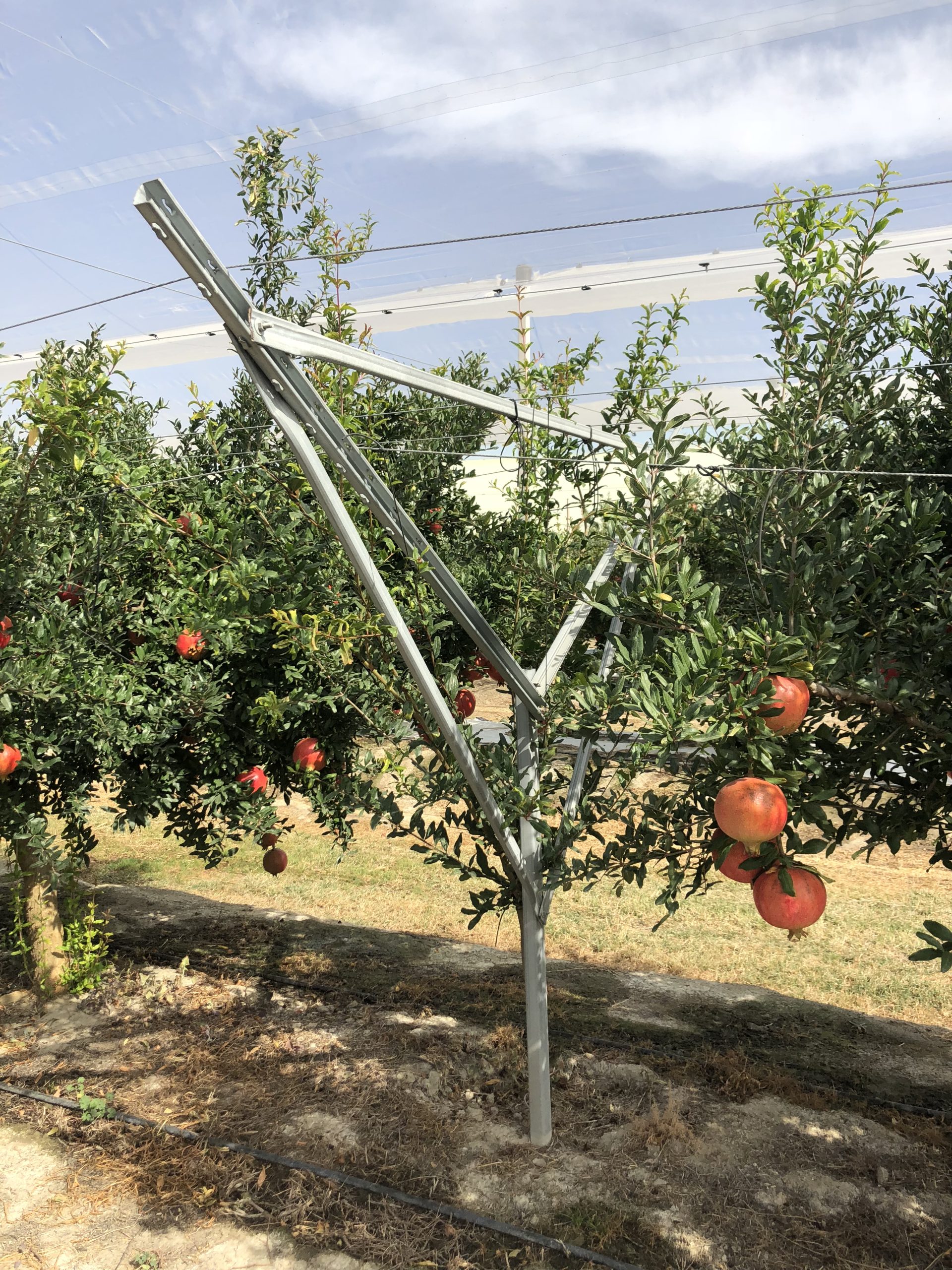 Wind is one of the main critical issues for the intensive cultivation of pomegranate, as it can cause significant damage such as: