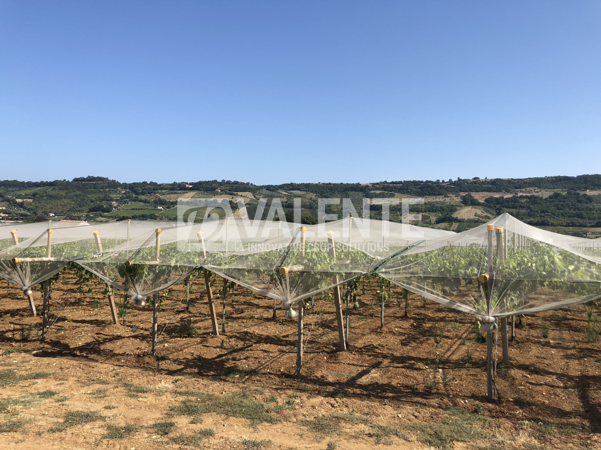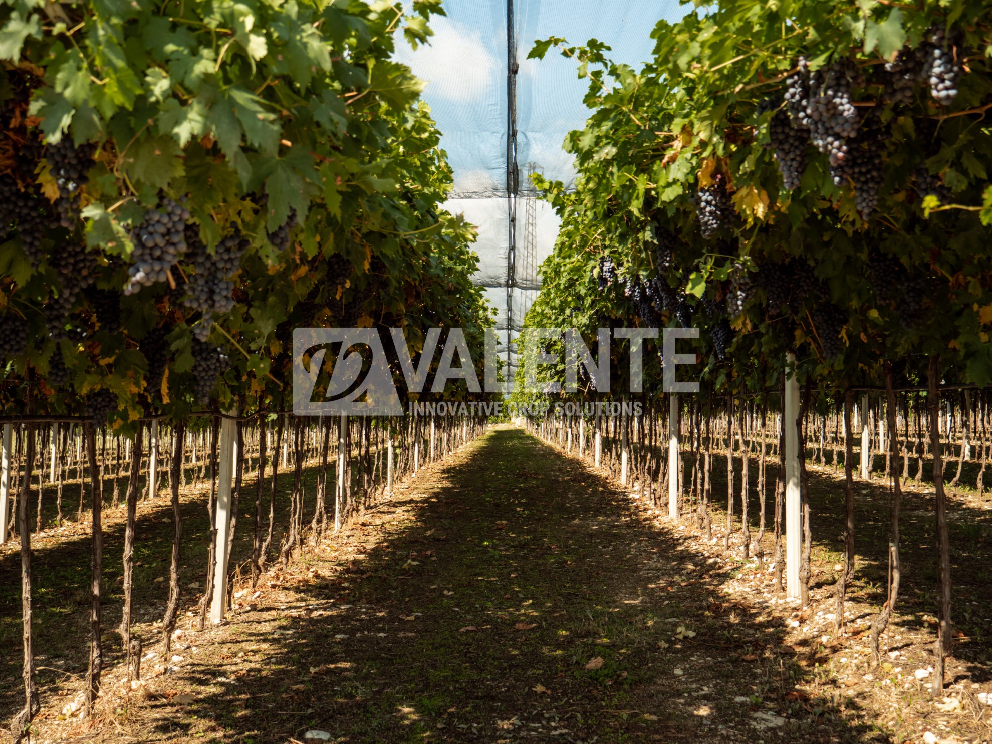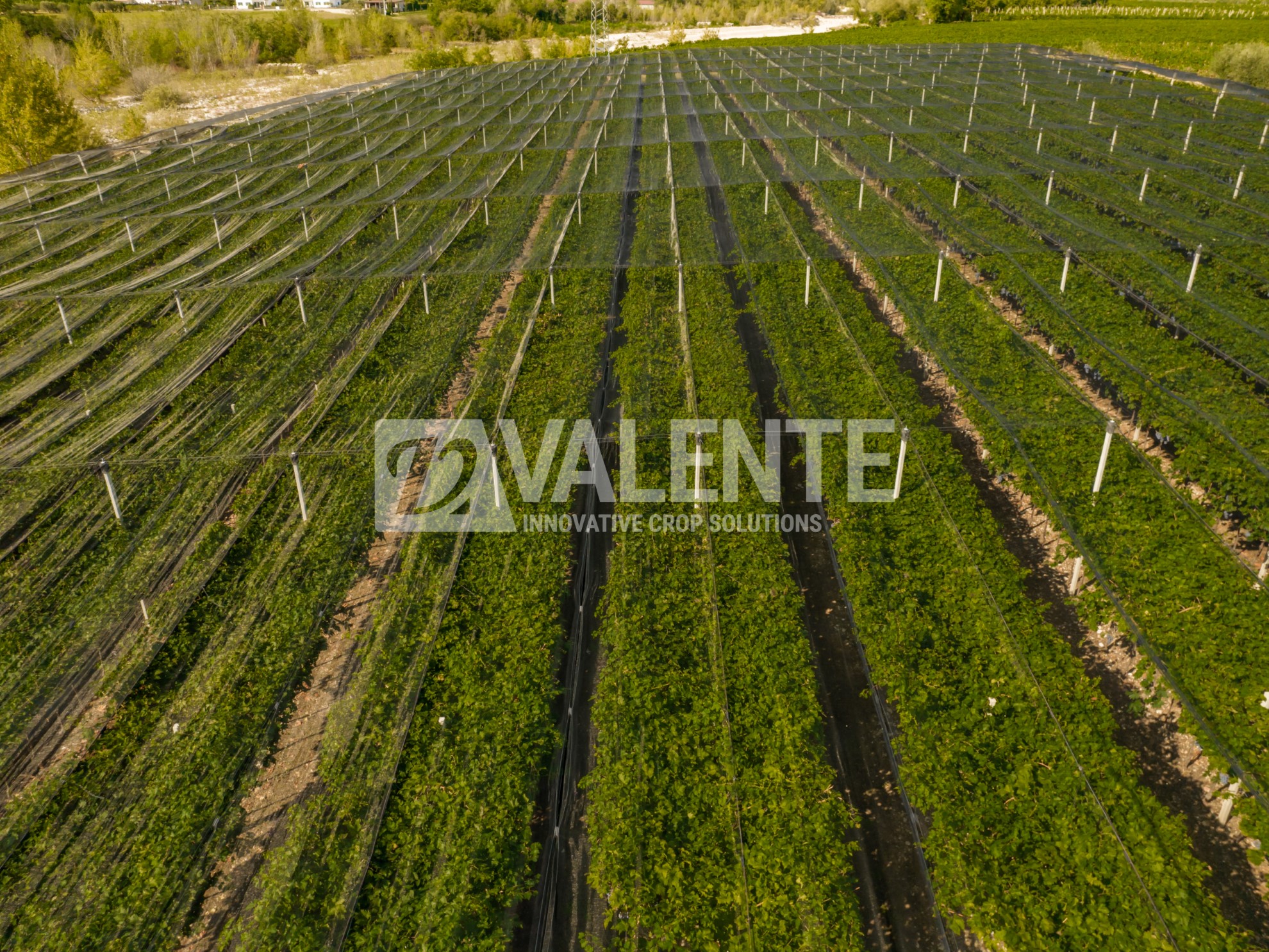 The ValenteProtect© Hail system is designed to protect crops from this problem and is perfectly compatible with V-shaped pergola systems, which are widely used in table grape cultivation.